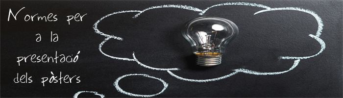 - Pòster, haurà de tenir com a màxim 120cm. d’alt x 85cm. d’ample. El títol s’haurà d’escriure en majúscules amb lletra de 5cm. d’alt. El nom dels autors/es i les dades de referència hauran de ser amb lletra més petita.